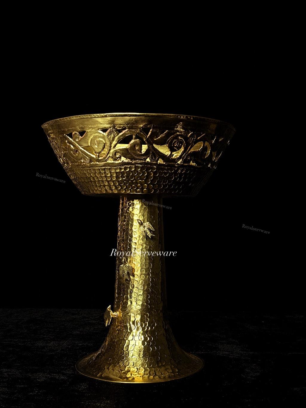 Hand crafted brass bowl with stand bird ornament